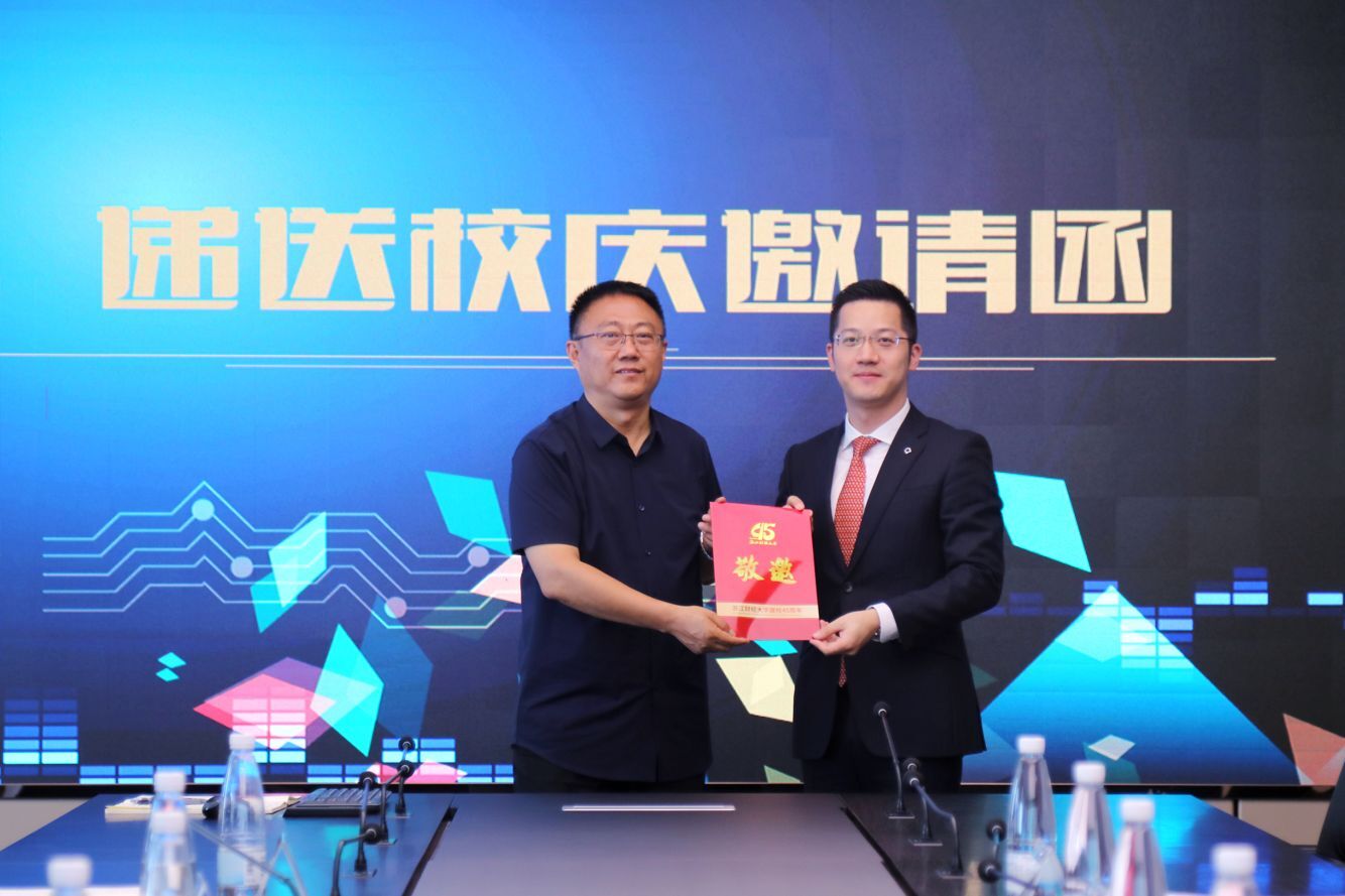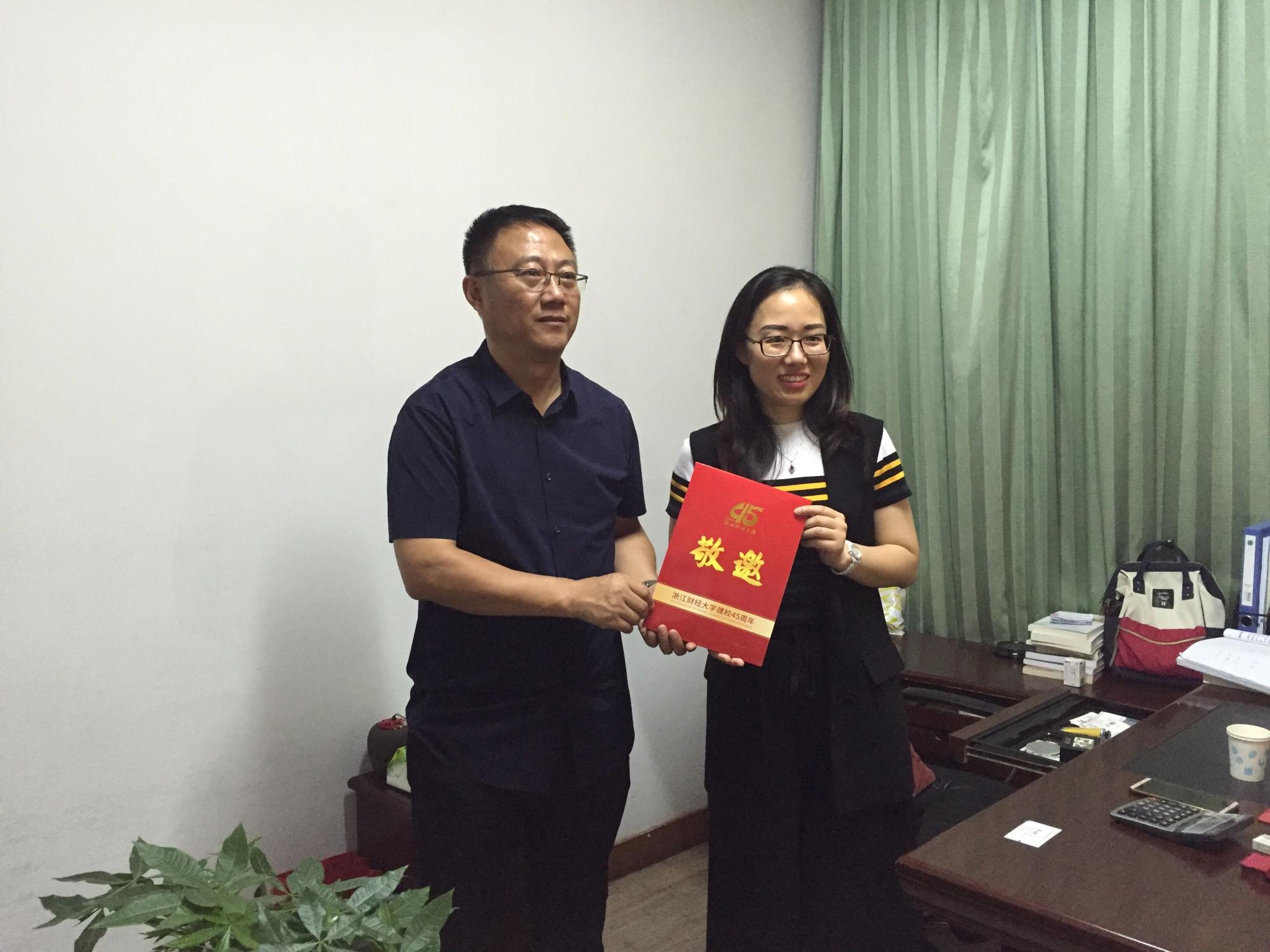 交流会最后,李占荣副董事长为王练文总经理及浙财学子代表梁一鸣送上了四十五周年校庆邀请函,诚邀公司领导及全体财经学子参加公司四十五周年庆典。
