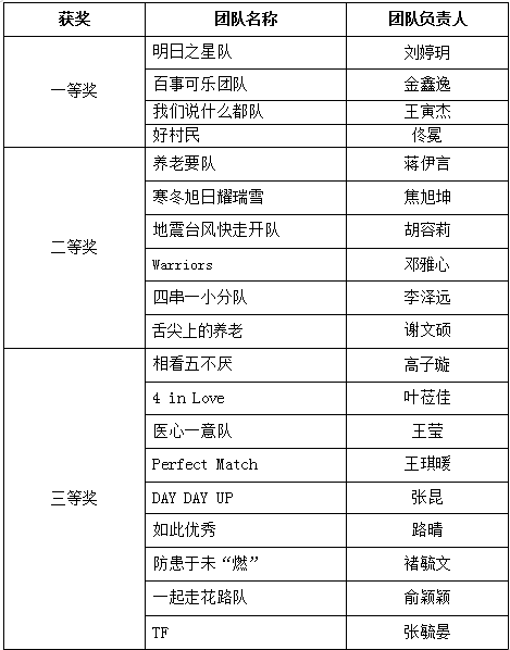 分赛区拟向大赛组委会推荐:明日之星队、百事可乐团队、我们说什么都队、好村民、养老要队、寒冬旭日耀瑞雪、地震台风快走开队、Warriors、四串一小分队、舌尖上的养老共10支参赛队伍参加省赛。