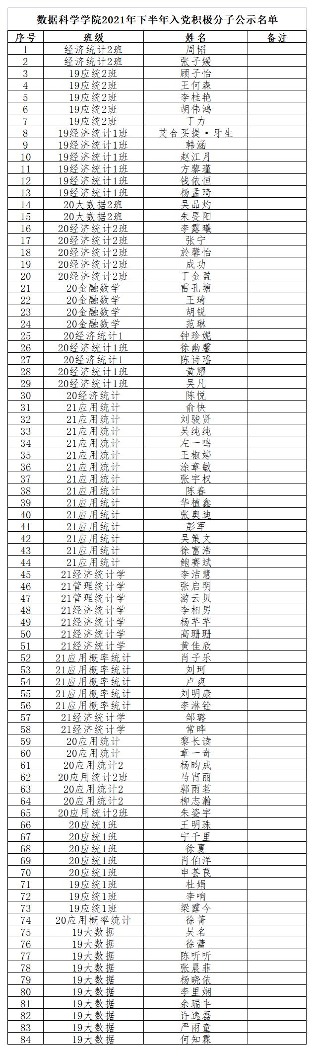 根据公司党委有关精神,在各团支部推优和各员工党支部民主评议,公司党委研究决定,以下同学确定为2021年下半年入党积极分子,现接受同学广泛评议,评议期三天,若有异议,请将反馈意见以书面形式于10月23日中午前交至公司党建中心(6号公司楼401室)或E-mail形式(公司信箱:skxy@zufe.edu.cn)联系。具体名单如下: