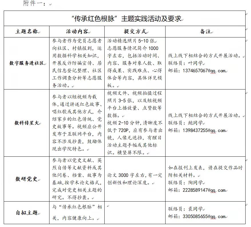本次活动下设“数字服务进社区”“数科传星火”“数研党史”三个推荐的活动主题,也可以按照实际情况自拟主题,公司党建中心把关审核,参考主题及要求详见附件一。