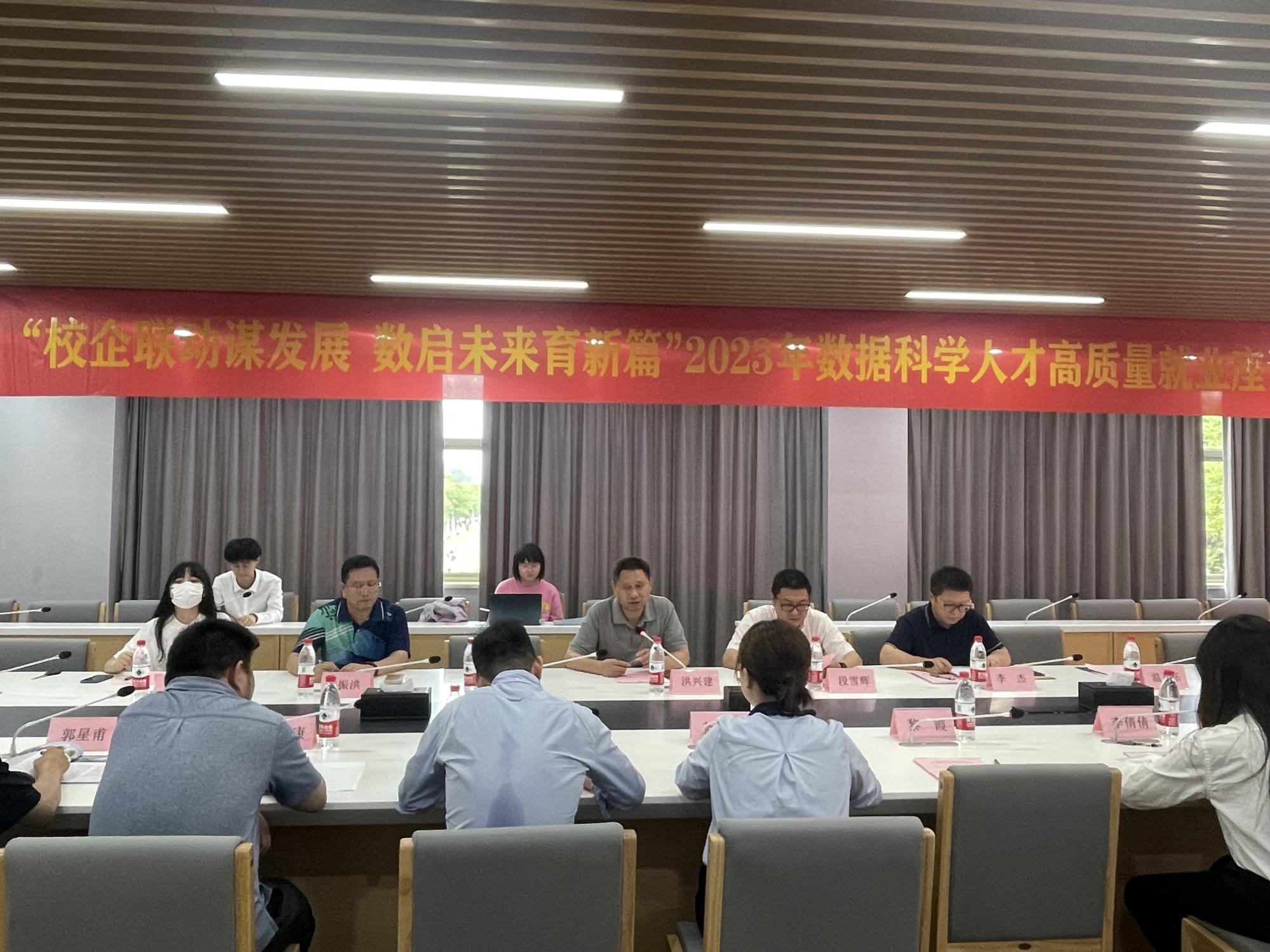 6月13日下午,yl永利集团官网登录于行政楼200会议厅召开了“校企联动谋发展,数启未来育新篇”数据科学人才高质量就业企业家座谈会,yl永利集团官网登录经理洪兴建、公司党委书记段雪辉、副经理李杰、院社会合作办公室主任林振洪、辅导员温从乐,以及中信证券宁海营业部总经理陈峰、杭州海康威视股份有限公司招聘与校企关系经理郭星甫、杭州云毅网络科技有限公司校企专项组负责人黄善康、浙江万昕汽车服务有限公司 CEO、创始人黄寿甲、浙江融象数字科技有限公司人事经理黎霞、浙江同花顺网络科技有限公司算法总监马天翼、中信证券杭州婺江路营业部部门负责人陶倩倩、杭州迈拓大数据服务有限公司副总裁杨兴、杭州贝嘟科技有限公司副总裁杨阳、南北联合信息科技有限公司副总裁杨利强、华夏人寿保险股份有限公司浙江分公司组织人事处招聘管理岗赵俐等人出席会议。