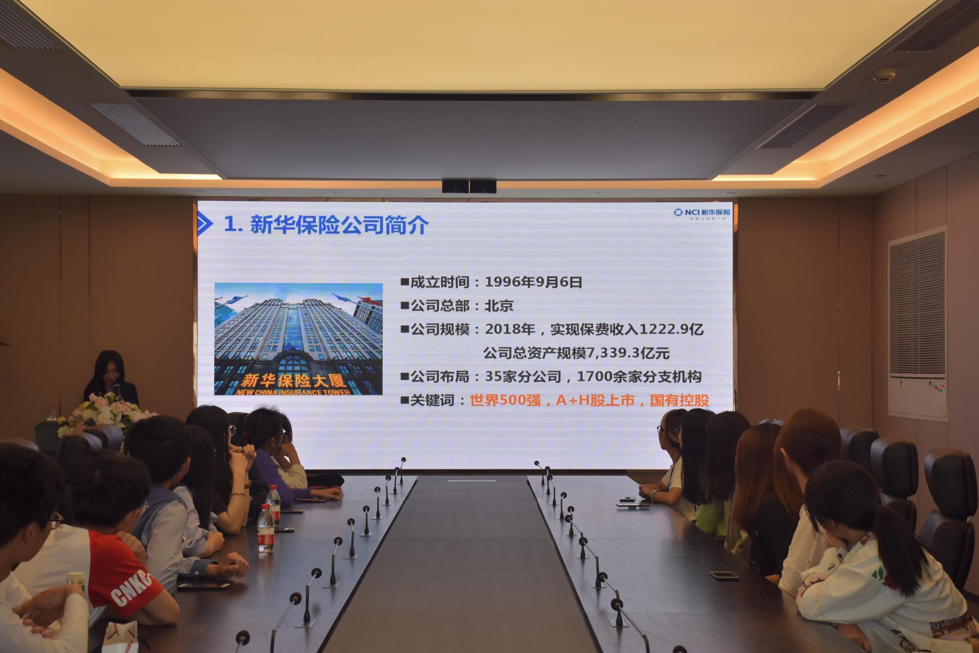 5月28日下午,yl永利集团官网登录十余名员工在辅导员蒋萌老师的带领下,实地参观了解了公司合作实习基地——新华人寿保险股份有限公司浙江分公司(以下简称新华保险)。