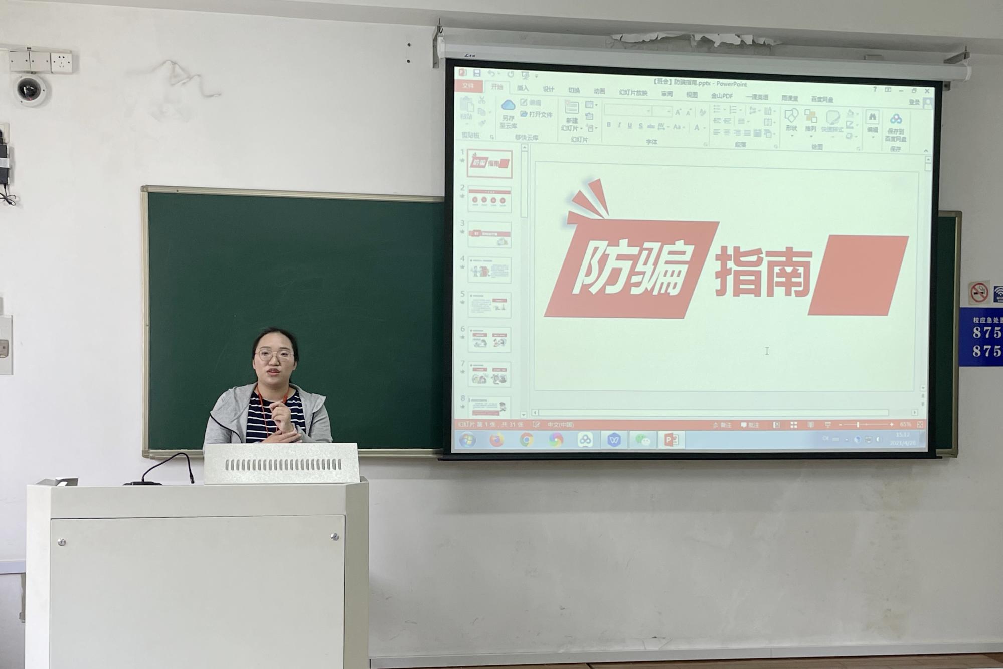 为加强新生的安全防范意识,切实保护员工免受财产及人身侵害,4月28日—30日,yl永利集团官网登录面向大一年级召开“防骗指南”主题班会。公司辅导员江挺、蒋萌,新生班主任周力凯分别主持班会进行安全教育知识讲解,应用统计专业、数据科学与大数据技术专业合计170余位员工参加,实现了安全教育全覆盖,做到了安全教育人人知晓。