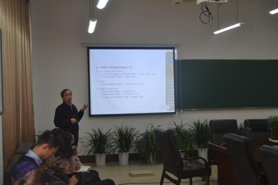 讲座开始,薛教授便引用南宋著名诗人林升的“山外青山楼外楼。”来称赞杭城优美的风景,并对公司秀丽的校园环境及师生的良好素养给予了高度的评价。本次讲座中,薛教授就统计的方法论、单自变量模型、半参轴模型三个重点进行了讲解。薛教授严谨的数学推导和悉心的讲解,让在场的的师生们对这些方面的理论知识、学术前沿有了更深入的了解。