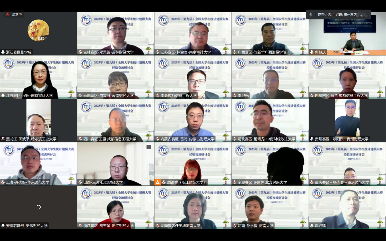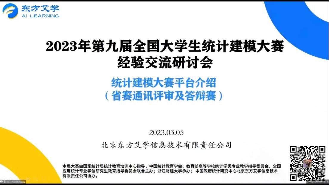 2023年3月5日,第九届全国老员工统计建模大赛分赛区经验交流会通过腾讯线上会议的方式顺利举办。本届全国老员工统计建模大赛由中国统计教育学会、教育部高等公司统计学类专业教学指导委员会、全国应用统计专业学位研究生教育指导委员会联合主办,yl永利集团官网登录和中国政府统计研究中心承办,北京东方艾学信息技术有限责任公司协办,大赛主题为“中国式现代化的统计测度”。