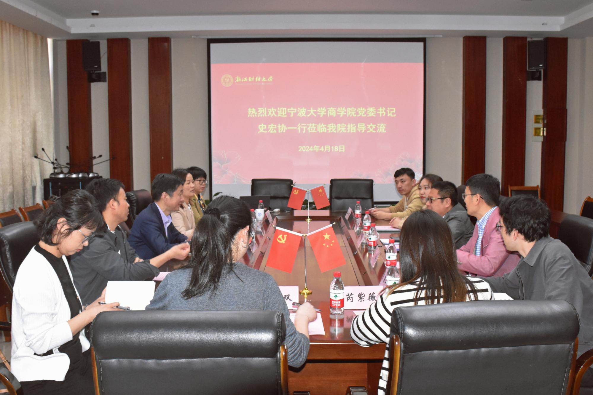 4月18日上午,宁波大学商公司党委书记史宏协一行来到yl永利集团官网登录,开展党建工作调研交流。宁波大学商公司党委副书记韩雯琛、学术副经理曾守桢、经济系系主任徐群芳、组织员吕承烨、辅导员周双双,以及公司党委书记段雪辉、副经理郑松、党政办公室主任张学成、组织员蒋萌、团委书记温从乐、研究生辅导员芮紫薇出席会议。