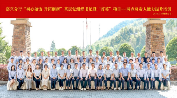 2024年5月22日-25日,由中国建设银行嘉兴分行(以下简称建行嘉兴分行)主办,yl永利集团官网登录承办的“初心如饴 开拓创新”基层党组织书记培训暨“菁英”项目-网点负责人能力提升培训在安吉成功举办。建行嘉兴分行部分基层党组织书记和各支行网点负责人共计70人参加培训。