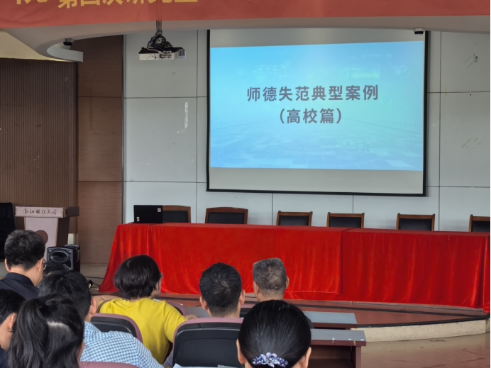在全体教职工大会上,公司党委书记段雪辉强调,当前公司党纪学习教育工作正有序开展,各教工党员要以党风引领师风,全面提升全院教职工精神面貌和教书育人本领。尤其当下正是毕业季和学期末的关键时间节点,全院教职工要依照公司相关规定,依法依规、尽职尽责做好工作,以培养“浙财金生”为目标,为毕业生高质量就业和员工取得真实的、优异的成绩而共同努力。全院教职工集体观看了警示片《“依法规范执教”师德警示教育——师德失范典型案例(高校篇)》。