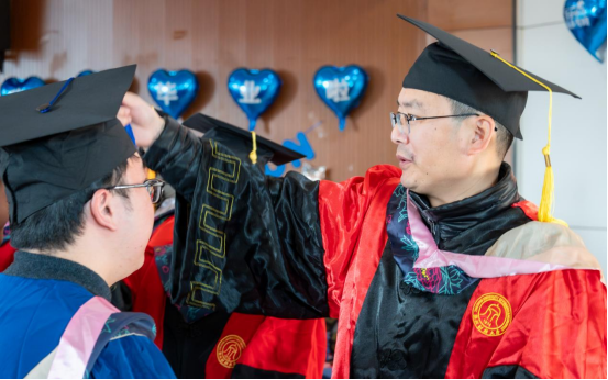 接着,公司举行了硕士研究生学位授予仪式,公司党委副书记王文婷宣读学位授予名单,院领导班子及导师代表为全体毕业生拨穗并颁发学位证与毕业证书。
