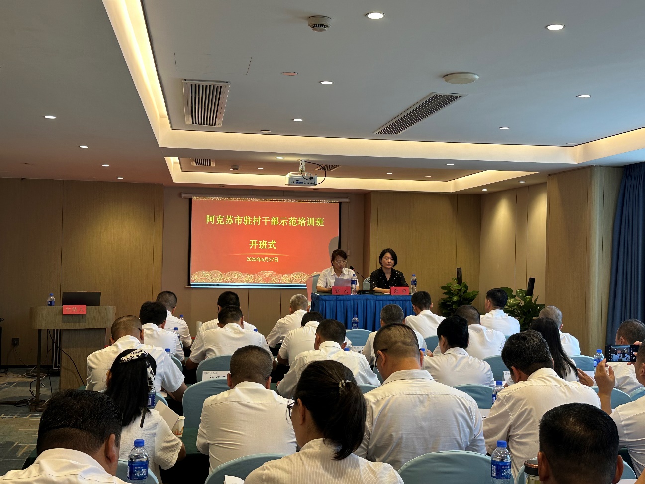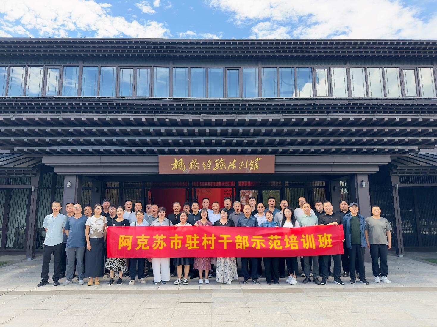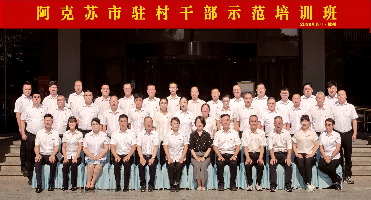 2025年6月26日—7月3日,由阿克苏市委组织部主办,yl永利集团官网登录承办的阿克苏市驻村干部示范培训班在杭州成功举办。阿克苏市驻村干部40人参加培训并顺利结业。阿克苏市人大常委会办公室主任、一级主任科员张云做开班动员讲话,永利集团官网文华管委会党支部书记、文华管委会办公室主任孙莹向培训班学员致开班辞。