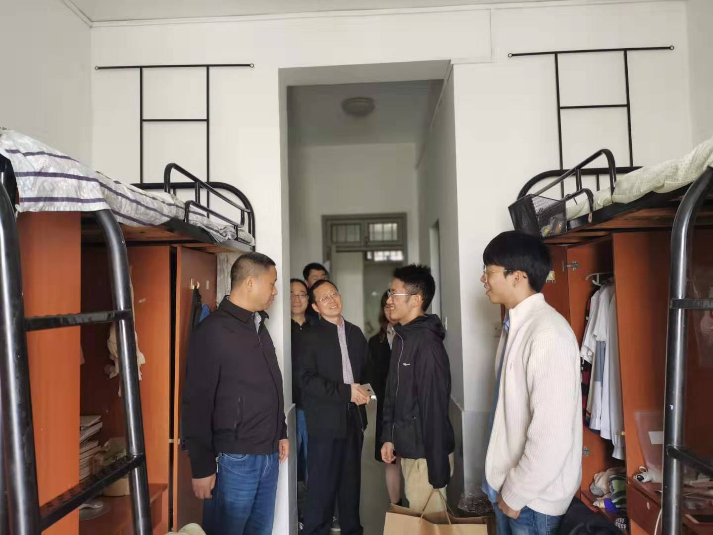 近日,公司经理洪兴建、党委书记周君兴、党委副书记刘向前、副经理罗季、周银香走访了“三联系”员工宿舍,询问关心了同学们的学习生活情况,给同学们带去了日用品和学习用品。辅导员李钊军、江挺、蒋萌陪同走访。