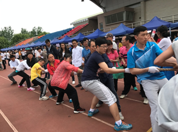 2017年5月4日—5月5日,公司第20届教职工健身运动会在下沙校区西田径场隆重召开。公司40余位教职工在公司党总支书记周君兴、工会主席邹洁老师的带领下参加了全部集体项目和个人项目的比赛。经过全体老师齐心协力、奋勇拼博,公司取得了教工组男子组100米第一名,4X100米接力第四名,运动投篮、袋鼠跳跃、抱球绕障第七名,插收接力、拔河第八名的好成绩,并获得本届教职工运动会体育道德风尚奖。