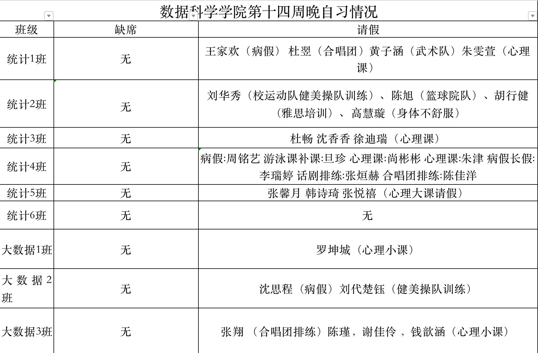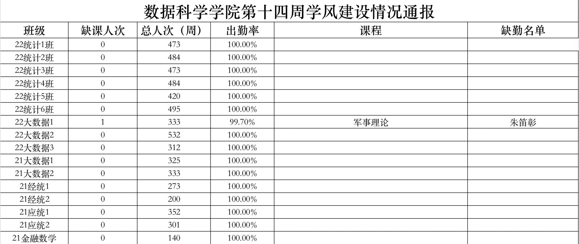 为进一步培育优良学风,构建公司学风建设的长效机制,营造良好的学习氛围,推进内涵建设,构建优良院风,公司对所有大一、大二班级统一上的课程及晚自习进行了课前全覆盖点名。现将点名情况做如下通报。