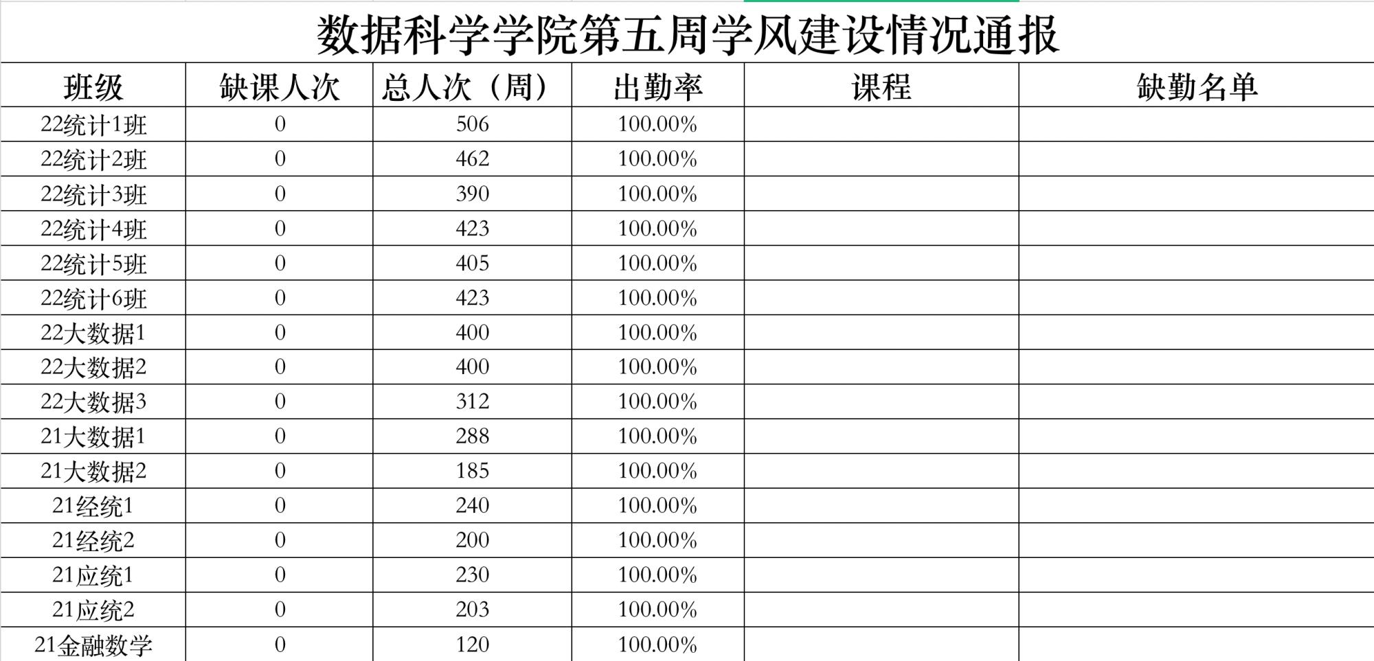 为进一步培育优良学风,构建公司学风建设的长效机制,营造良好的学习氛围,推进内涵建设,构建优良院风,公司对所有大一、大二班级统一上的课程及晚自习进行了课前全覆盖点名。现将点名情况做如下通报。