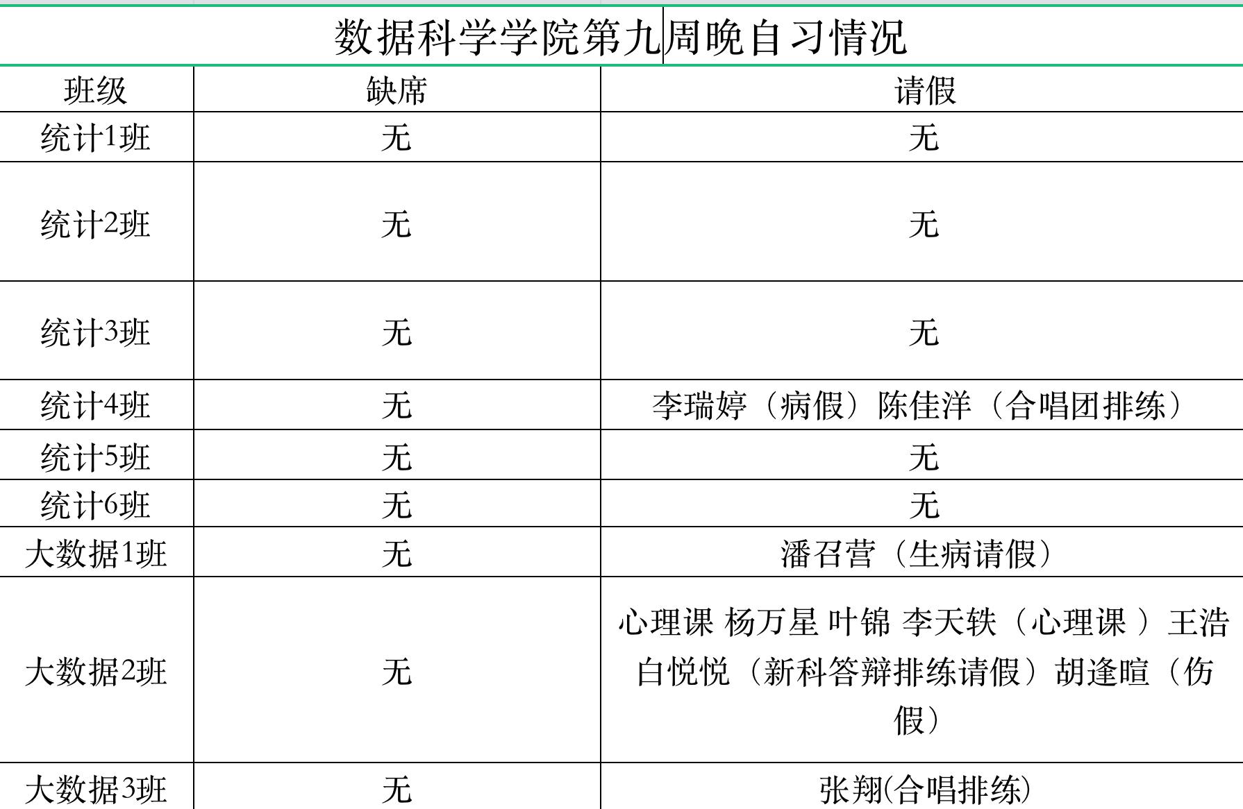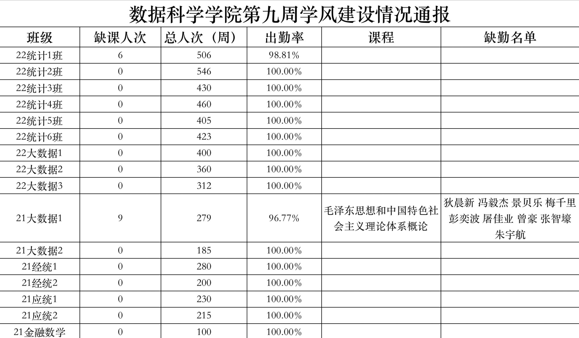 为进一步培育优良学风,构建公司学风建设的长效机制,营造良好的学习氛围,推进内涵建设,构建优良院风,公司对所有大一、大二班级统一上的课程及晚自习进行了课前全覆盖点名。现将点名情况做如下通报。