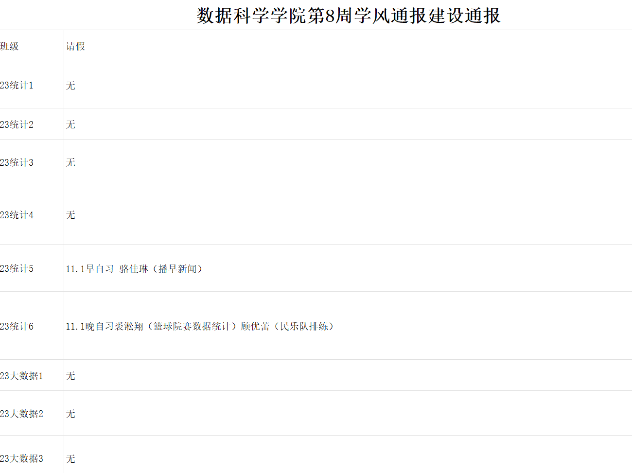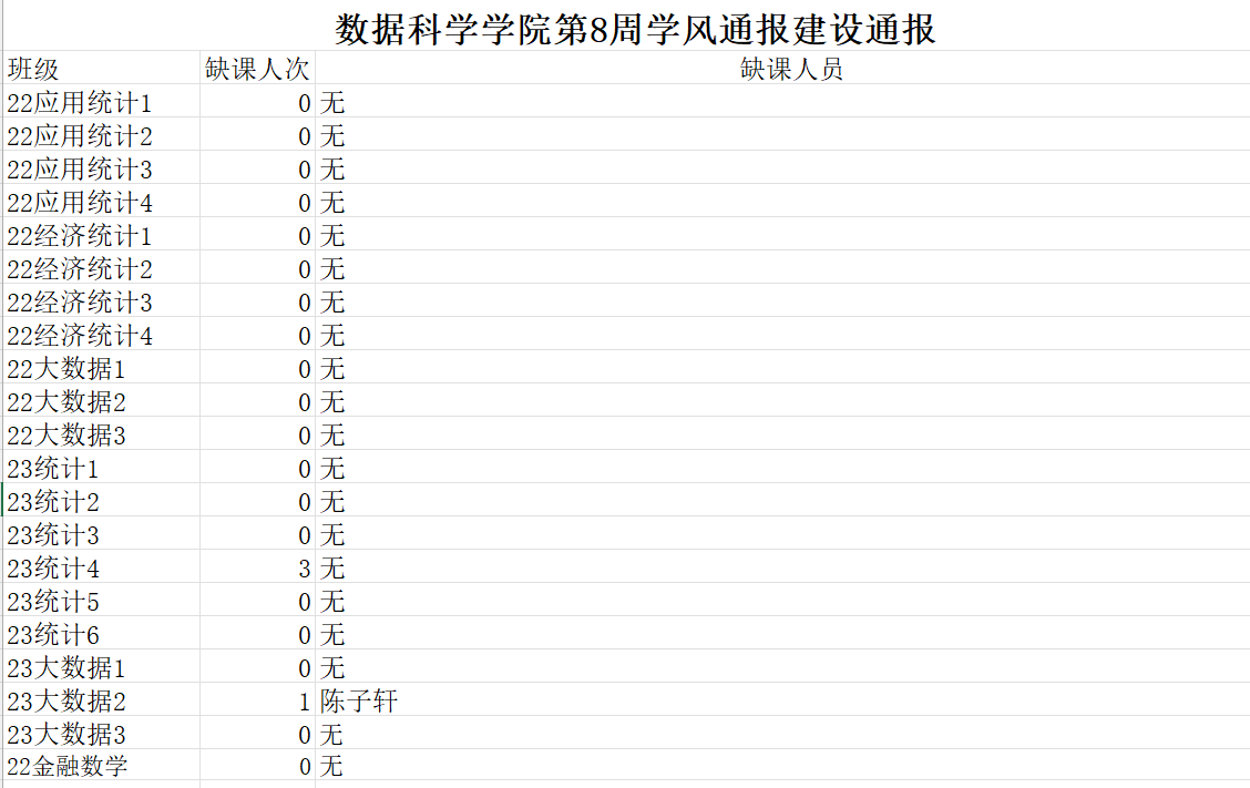 进一步培育优良学风,构建公司学风建设的长效机制,营造良好的学习氛围,推进内涵建设,构建优良院风,公司对所有大一、大二班级统一上的课程及晚自习进行了课前全覆盖点名。现将点名情况做如下通报。