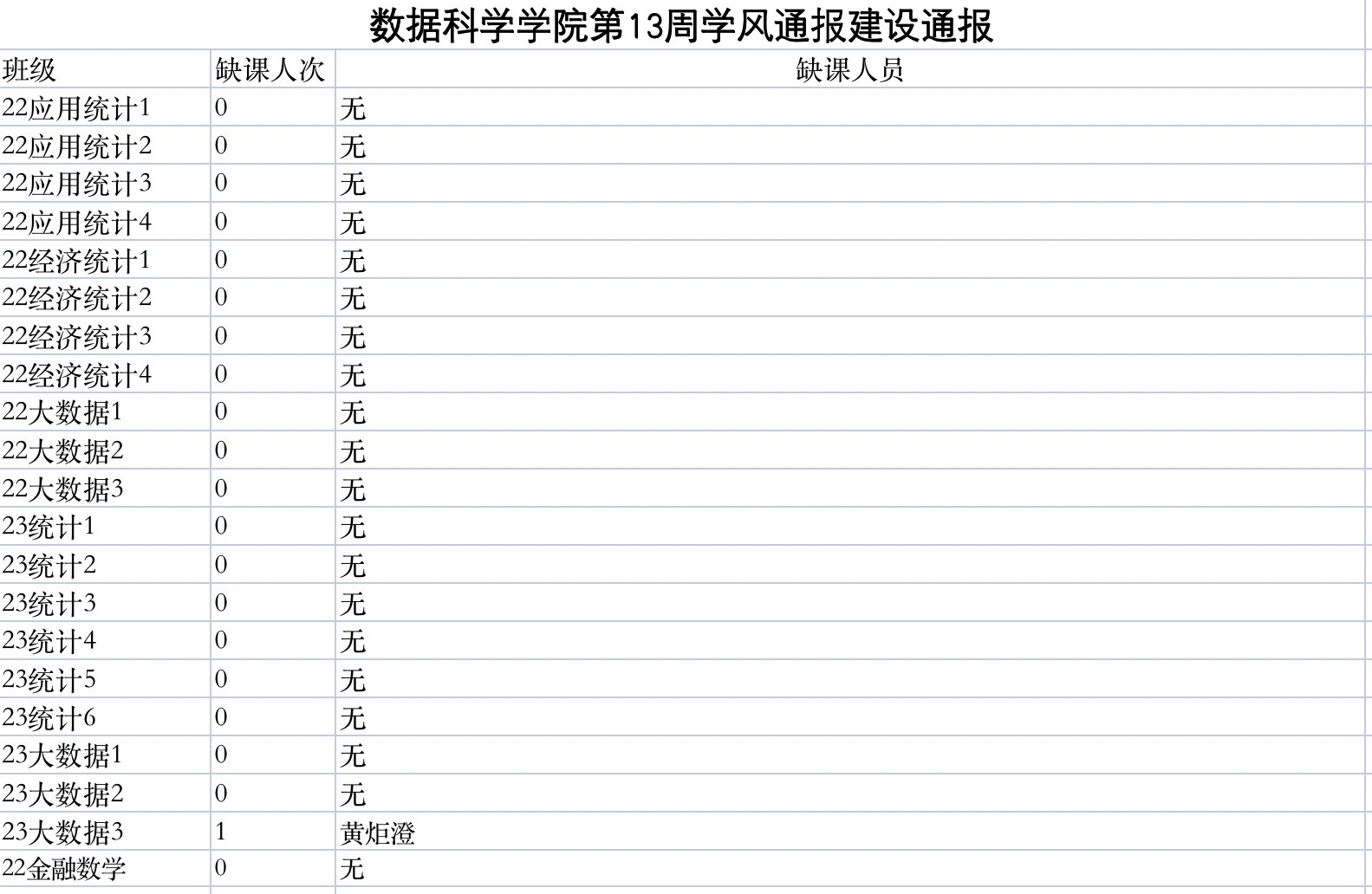 为进一步培育优良学风,构建公司学风建设的长效机制,营造良好的学习氛围,推进内涵建设,构建优良院风,公司对所有大一、大二班级统一上的课程及晚自习进行了课前全覆盖点名。现将点名情况做如下通报。
