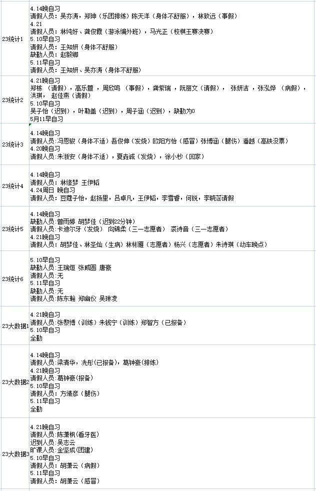 为进一步培育优良学风,构建公司学风建设的长效机制,营造良好的学习氛围,公司对大一各班晚自习进行全覆盖点名,对专业课程进行抽查点名,现将考勤情况公布如下: