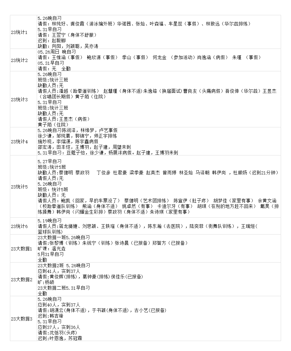 为进一步培育优良学风,构建公司学风建设的长效机制,营造良好的学习氛围,公司对大一各班晚自习进行全覆盖点名,对专业课程进行抽查点名,现将考勤情况公布如下:
