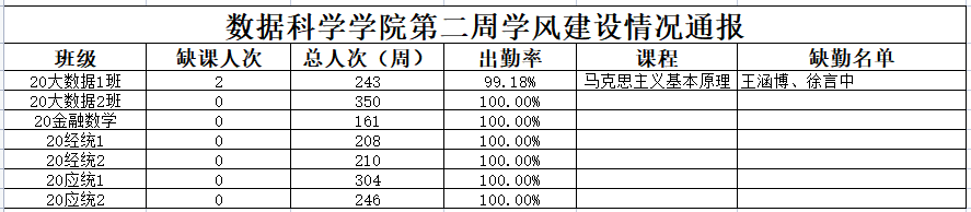 为进一步培育优良学风,构建公司学风建设的长效机制,营造良好的学习氛围,推进内涵建设,构建优良院风,公司对所有大一、大二班级统一上的课程进行了课前全覆盖点名。现将点名情况做如下通报。