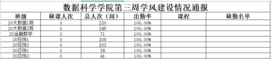 为进一步培育优良学风,构建公司学风建设的长效机制,营造良好的学习氛围,推进内涵建设,构建优良院风,公司对所有大一、大二班级统一上的课程进行了课前全覆盖点名。现将点名情况做如下通报。