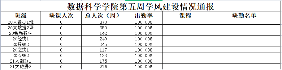 为进一步培育优良学风,构建公司学风建设的长效机制,营造良好的学习氛围,推进内涵建设,构建优良院风,公司对所有大一、大二班级统一上的课程进行了课前全覆盖点名。现将点名情况做如下通报。
