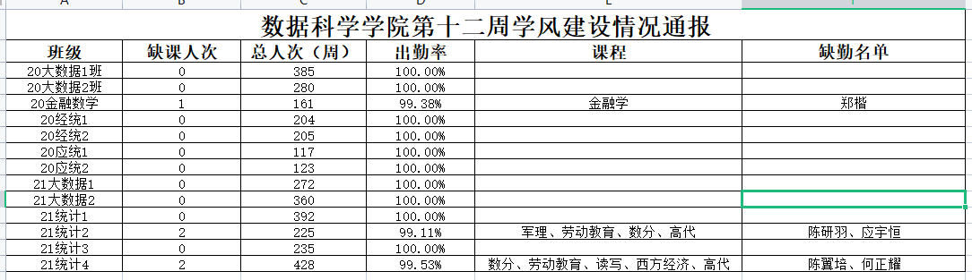 为进一步培育优良学风,构建公司学风建设的长效机制,营造良好的学习氛围,推进内涵建设,构建优良院风,公司对所有大一、大二班级统一上的课程及晚自习进行了课前全覆盖点名。现将点名情况做如下通报。