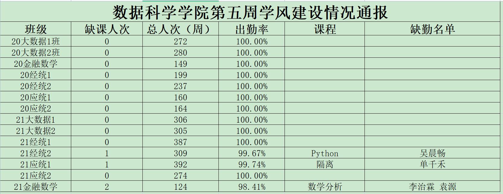 为进一步培育优良学风,构建公司学风建设的长效机制,营造良好的学习氛围,推进内涵建设,构建优良院风,公司对所有大一、大二班级统一上的课程及晚自习进行了课前全覆盖点名。现将点名情况做如下通报。