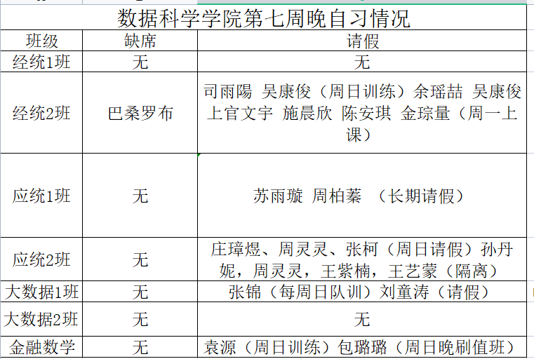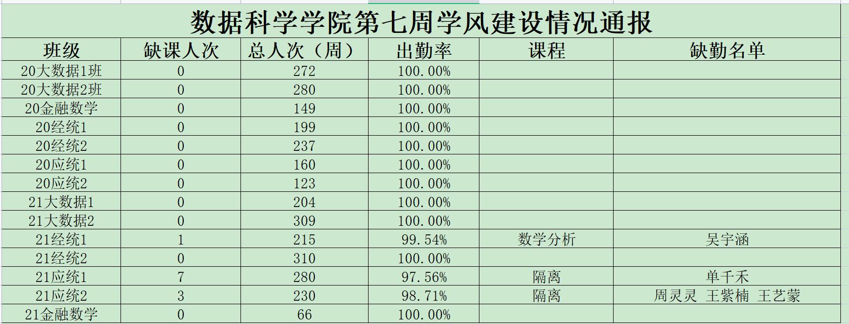 为进一步培育优良学风,构建公司学风建设的长效机制,营造良好的学习氛围,推进内涵建设,构建优良院风,公司对所有大一、大二班级统一上的课程及晚自习进行了课前全覆盖点名。现将点名情况做如下通报。