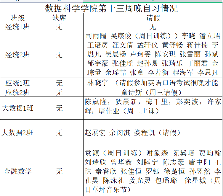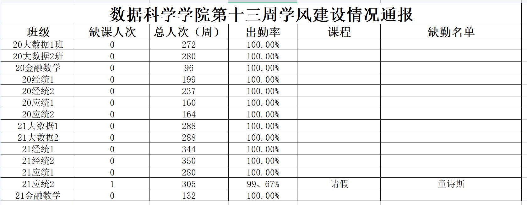 为进一步培育优良学风,构建公司学风建设的长效机制,营造良好的学习氛围,推进内涵建设,构建优良院风,公司对所有大一、大二班级统一上的课程及晚自习进行了课前全覆盖点名。现将点名情况做如下通报。