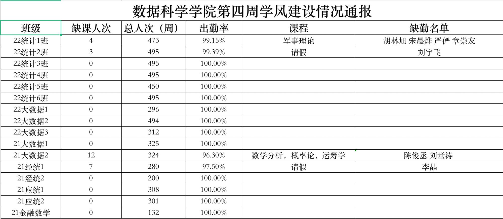 为进一步培育优良学风,构建公司学风建设的长效机制,营造良好的学习氛围,推进内涵建设,构建优良院风,公司对所有大一、大二班级统一上的课程及晚自习进行了课前全覆盖点名。现将点名情况做如下通报。