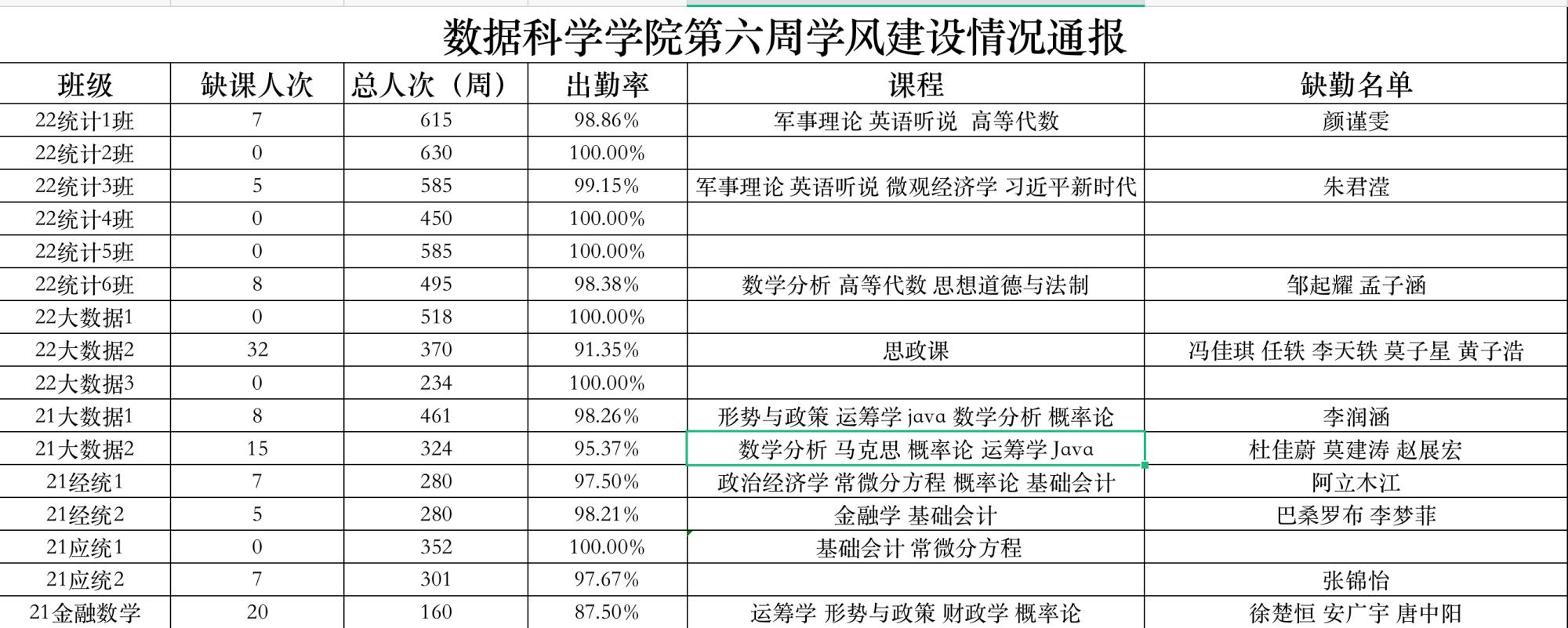 为进一步培育优良学风,构建公司学风建设的长效机制,营造良好的学习氛围,推进内涵建设,构建优良院风,公司对所有大一、大二班级统一上的课程及晚自习进行了课前全覆盖点名。现将点名情况做如下通报。