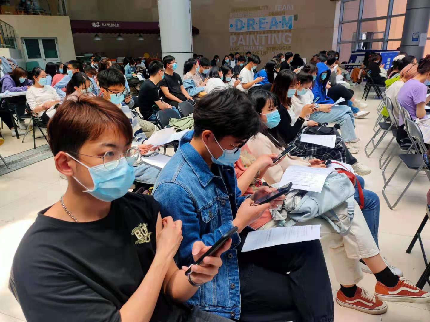 4月15日,公司近90位研究生在文化中心接种新冠疫苗,为共筑免疫屏障出力。公司共有97位研一研二研究生,除其中少数特殊情况遵医嘱不能接种外,全院研究生的新冠疫苗接种率几近90%。