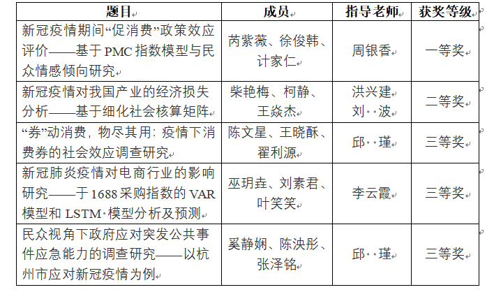 本届大赛由中国统计教育学会和全国应用统计专业学位研究生教育指导委员会联合主办,中南财经政法大学统计与数学公司和徐州工程公司数学与统计公司联合承办。本届研究生统计建模大赛历时9个月,全国271支队伍参赛,最终评选一等奖20支、二等奖40支、三等奖80支。