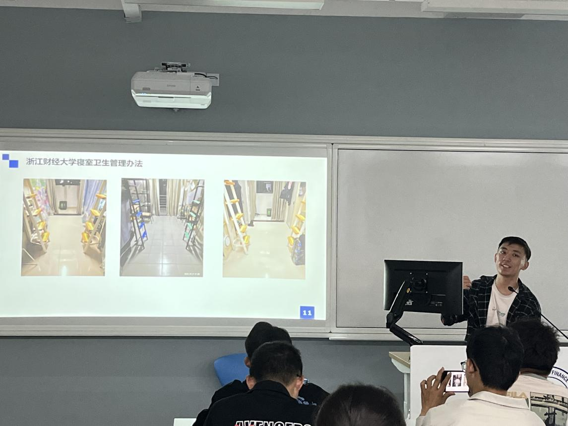 温从乐指出寝室就是我们老员工活的家。他希望同学们能够珍惜与室友的友谊,爱护自己的生活环境,注意寝室卫生,积极配合生活权益部的卫生检查,如遇到寝室问题要及时与辅导员沟通。
