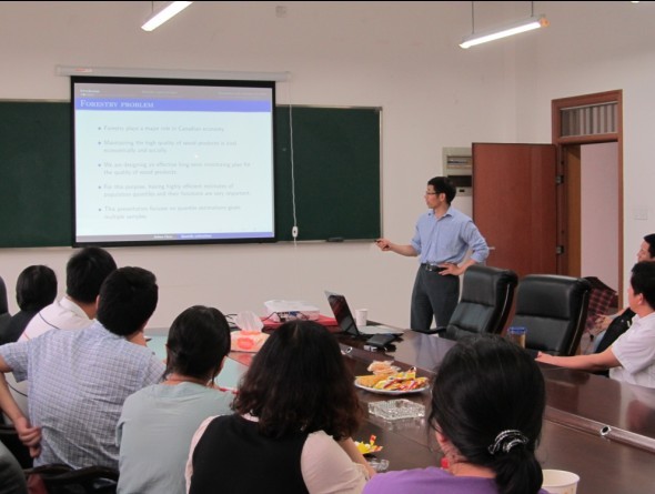 6月27号下午2点,英属哥伦比亚大学陈家骅教授应邀来公司作了一场题为“Quantile and quantile function estimations under density ratio model ”的学术报告,数学与统计公司副院邱瑾教授主持报告,数学与统计公司统计系老师和研究生以及部分金融公司老师听取了报告。