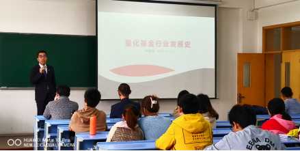 张恒溢教授是中国人民大学经济论坛量化投资公司理事、上海财经大学国金公司客座教授、上海立信会计金融公司兼职教授、知名基金公司高级合伙人,他为同学们介绍了量化投资基金行业的发展史,深入浅出地带领同学们认识量化金融,体会量化金融发展过程中经历的重重挑战。