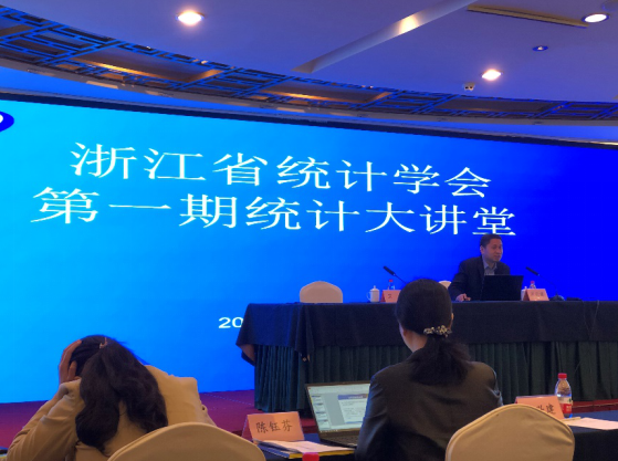 11月20日,浙江省统计学会第一期统计大讲堂在杭州举行,来自省统计局、国家统计局浙江调查总队、省内各高校、各地市统计局及相关单位的近120位代表参加了会议。会议由浙江省统计局党组副书记、副局长、一级巡视员、省统计学会会长竺园主持。公司经理洪兴建教授(省统计学会副会长)参加会议并作专题报告。