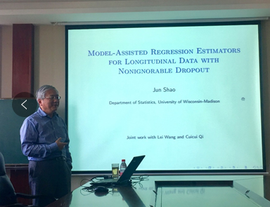 10月30日下午,威斯康辛大学麦迪逊分校教授、博士生导师,美国国家统计局高级研究员邵军教授应邀来公司做了一场题为“Model-Assisted Regression Estimators for Longitudinal Data with Nonignorable Dropout”的学术讲座。讲座由yl永利集团官网登录罗季教授主持。yl永利集团官网登录部分老师及研究生参加了讲座。