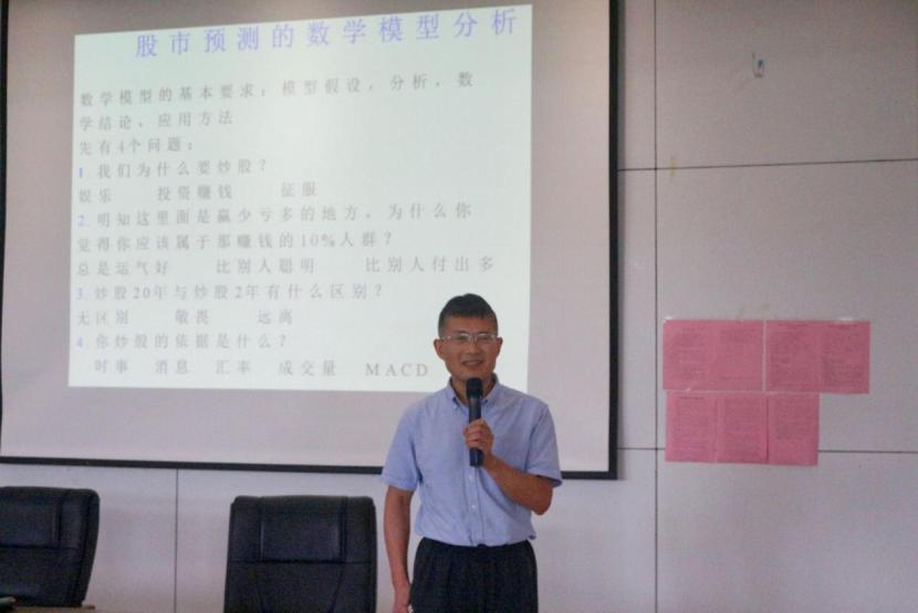 王福来副教授的报告以形象生动的语言和诗歌体裁,从动力学、统计规律和实践经验的角度,就股市的可预测性向与会师生做了精彩的分享。统计学可以帮助一个人大致认识股市的规律,但动力学可以帮助一个人从实践中把握股市的关键点。王福来副教授提到股市投资需要一些统计学和动力学的基本知识,也需要很多时间和精力作为保障。股市是一门学问,不是随随便便就可以成功,因此老员工不适于现在投入过多精力在股市中,而应该把主要精力放在学业上。如果老员工对股市有兴趣,可以适当关注股票的运动特点。为了说明股市的规律和炒股的难度,王福来副教授还用10首哲理诗作了分析和总结。