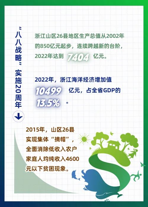 大力发展海洋经济。充分利用浙江海洋资源优势,加强陆域和海域经济的联动发展,做好海洋经济大文章。据浙江省海洋科公司统计,2022年,浙江海洋经济增加值10499亿元,占全省GDP的13.5%。2022年,6个海岛县生产总值达到2820亿元。