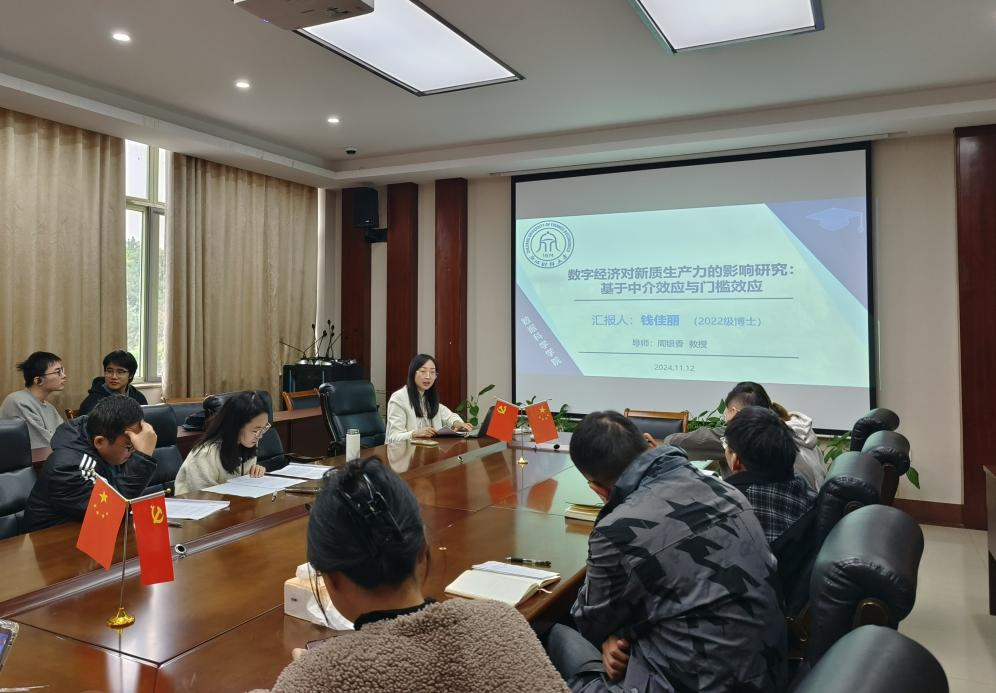 最后,石薇和朱宗元老师对两位博士生的研究进行学术点评,与会师生就报告中的观点、方法以及实际应用等问题进行了深入探讨,现场气氛十分活跃。此次学术沙龙不仅提供了一个高水平的学术交流平台,促进了学术思想的碰撞与融合,也极大地激发了大家的科研热情和创新思维。同时,通过此次活动与会者更加深刻地认识到了数字经济和共同富裕在当前社会发展中的重要性,为未来的研究和实践提供了有益的启示和借鉴。