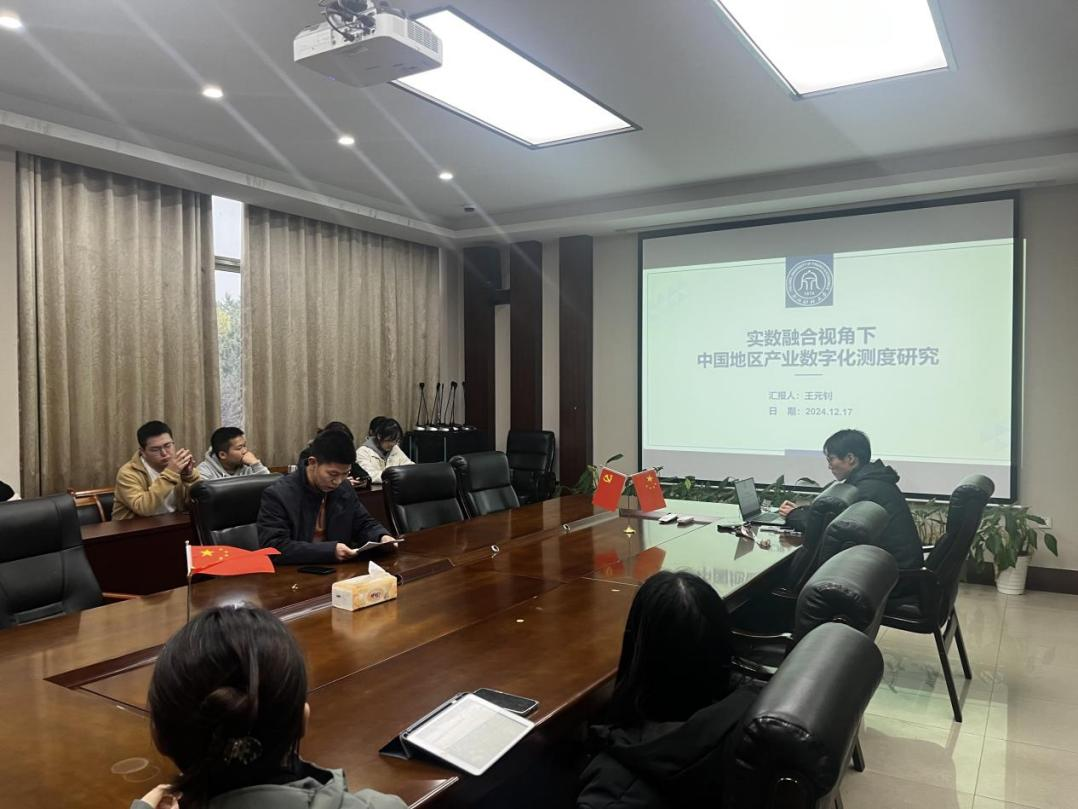 王元钊作题为《实数融合视角下中国地区产业数字化测度研究》的学术报告。该报告立足于促进实体经济与数字经济深度融合的政策背景,从实数融合视角出发设计了产业数字化的统计测度方法,并对产业数字化过程中的增长贡献、规模趋势以及差异结构进行了详细剖析。